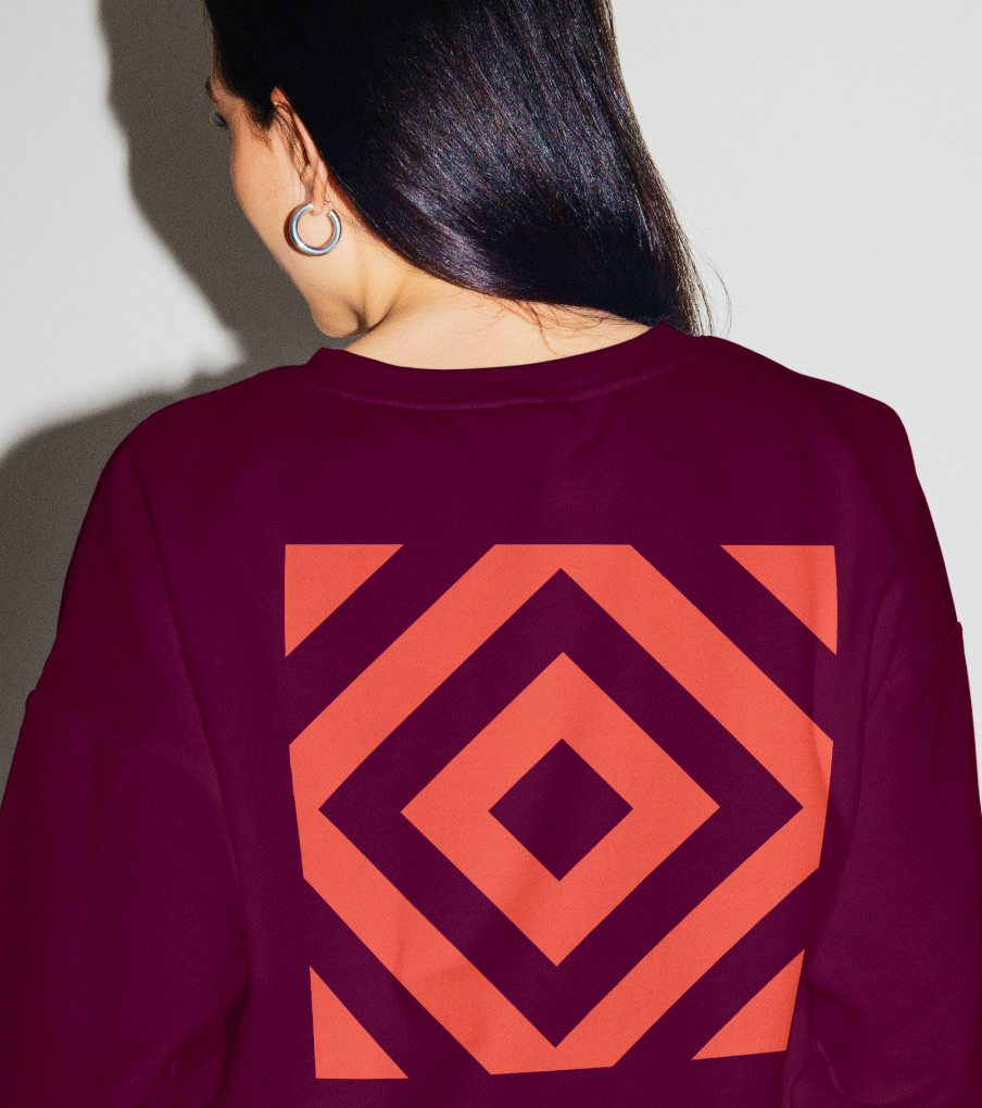 Since the pattern is built from a rectangular form, it naturally works well when layered with other square elements.